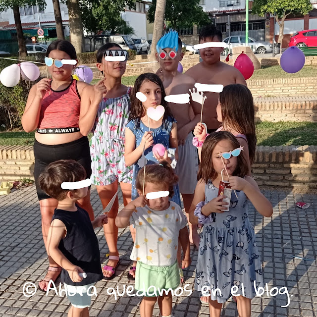 No pude asistir, ni al aperitivo, ni a la consecutiva fiesta. Por eso delegué en mis hijos para que acompañaran a sus primos y a su tía en todo momento de la comida por si surgía algún problemilla. La fiesta de por la tarde, como ya se había advertido, era solo para los niños. Mi hermana compró cosas para hacer juegos, para decorar la zona del parque donde están cada tarde. Invitó a los amigos de siempre, los niños del parque, a merendar. Hubo perritos calientes, sándwiches, bebidas, chuches y hasta tarta. Y después todos los críos del barrio que se juntan allí, cada tarde y lo celebraron con ellos, se querían bautizar también. Jejeje...