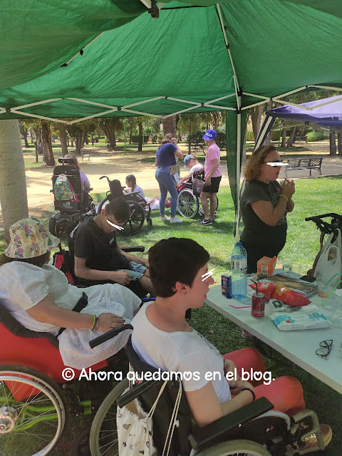 Esta fue la última salida que hicimos en la temporada de ocio antes del verano. Sé que algunas personas me habéis preguntado por ella, porque fue muy divertida y os lo conté por privado. Fue en mayo, salimos a una quedada de picnic. Y aunque en principio iba a ser en Sevilla, como la mayoría de usuarios que participaban era de nuestra ciudad, pues lo hicimos en el parque de La Arquería en casa. Los voluntarios ese día de volcaron (como siempre) pero quería hacer mención a que siendo de otras localidades, no ponen objeción y se desplazan "por su cuenta" y eso es de agradecer y reconocerlo.